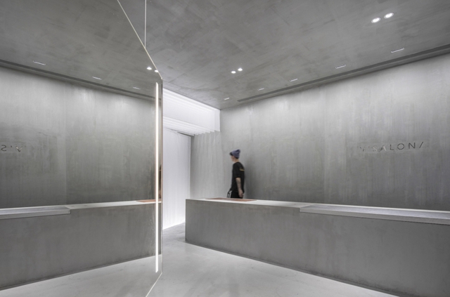 今天廣州裝飾公司為你分享這個第一眼沒認(rèn)出是美發(fā)店的案例,據(jù)說這個項目的要求非常多,不能有任何的固定隔墻,所有空間中可見的墻體,必須是可以移動的,像吧臺鏡子和各種柜子都得是能移動的,這個地方并不大,要滿足理發(fā)店的所有功能需求,這不容易,何況還要很有設(shè)計感。室內(nèi)的設(shè)計以塊面的穿插,鏡面的反射來趣味整個空間,非常高級且有藝術(shù)感的灰色形成多個平面交替,最后用一抹藍(lán)色來打破它。