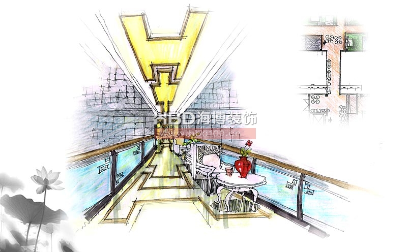 大廳采用了黑金的主色調,頂部的工藝吊燈美侖美奐,紗簾別有風味,如水般柔情四射,整個空間洋溢著別樣浪漫溫情。地面鋪設黑色藝術地毯,陪襯中式博古架,不同的材質在空間綜合運用,不同的肌理形成有節奏的韻律感。